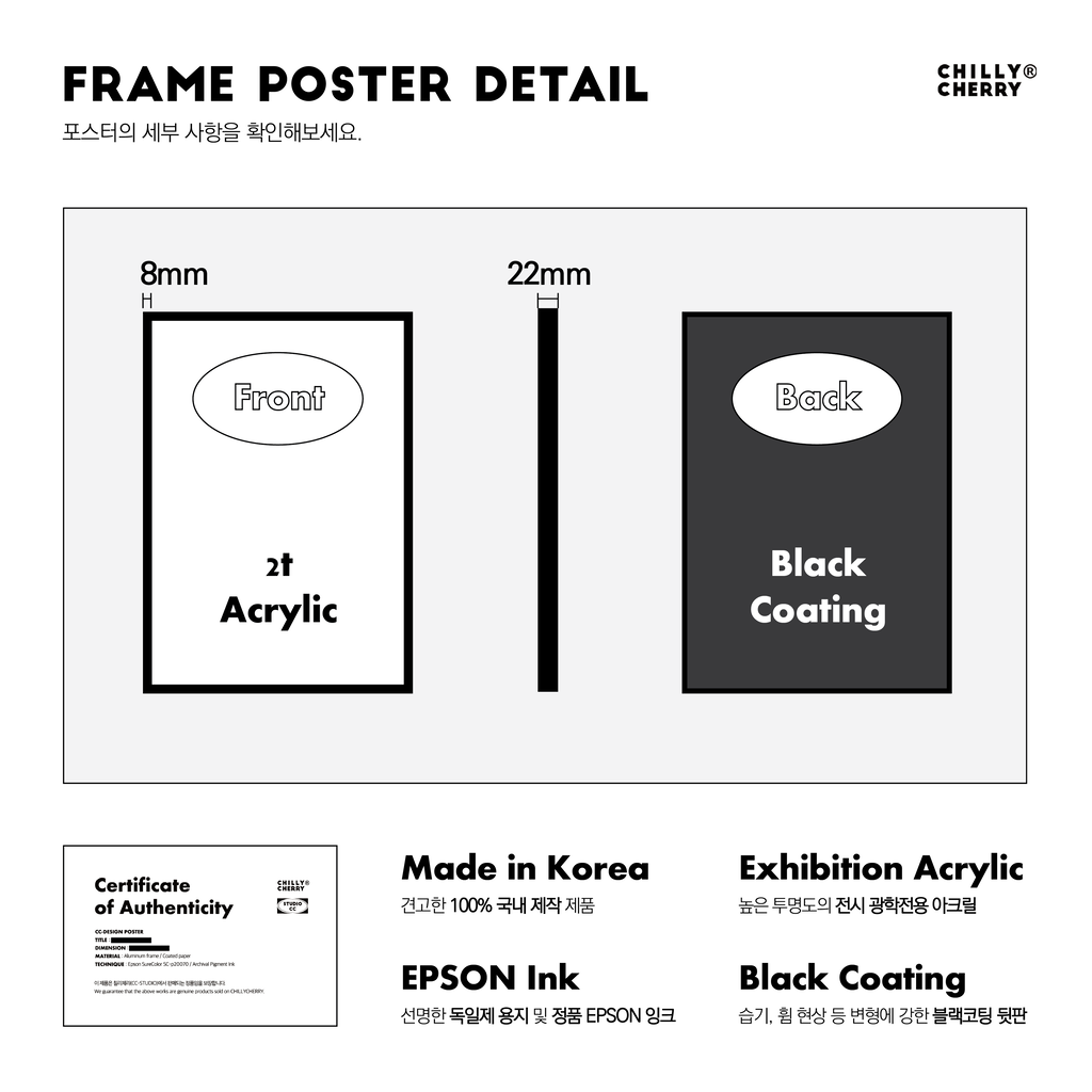구성 1. 배접 프린트 1개 (1 x Mounted Poster) 2. 알루미늄 액자 1개 (1 x Aluminum Frame)
